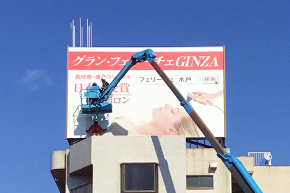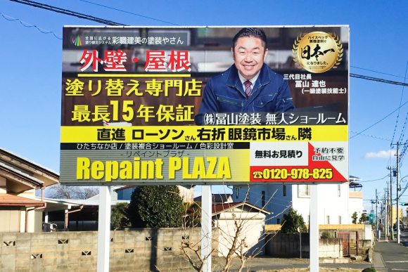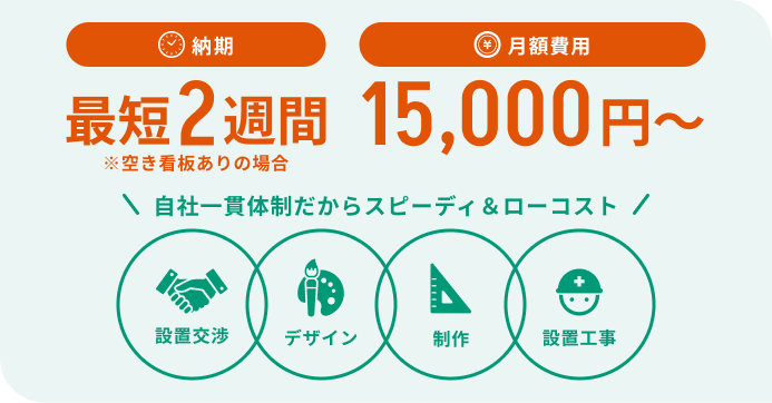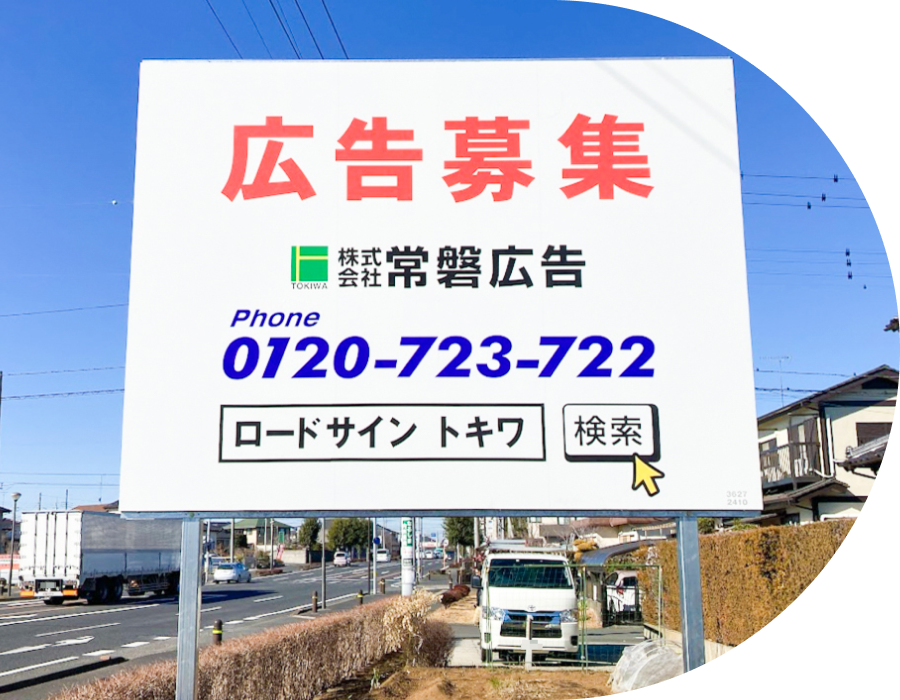 ロードサインは、地域の方の生活導線に直接アプローチすることができる、たったひとつの広告手法です。毎日の通勤路やいつも立ち止まる交差点など、人が生活する上で必ず目にする場所に設置することができるため、多くに人にお店や会社の情報を届けることができます。